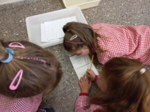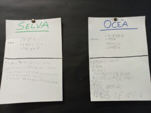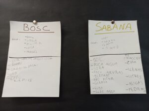 CADA GRUP HA TRIAT UN SECRETARI PER ESCRIURE I HAN FET UNA PRIMERA PLUJA D’IDEES DELS MATERIALS QUE NECESSITARIEN PER PODER FER LA RECREACIÓ DEL SEU HÀBITAT.