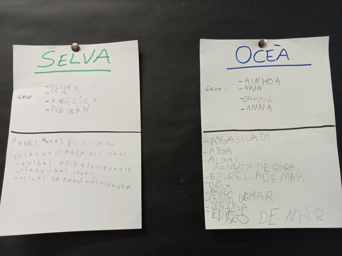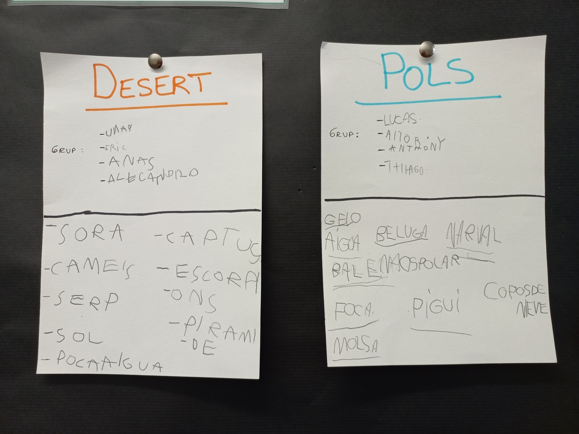 AVUI HEM COMENÇAT A TREBALLAR AMB ELS NOSTRES GRUPS DE TREBALL. CADA GRUP ÉS L’ENCARREGAT D’UN HÀBITAT DIFERENT: DESERT, SELVA, SABANA, POLS, OCEÀ, BOSC.