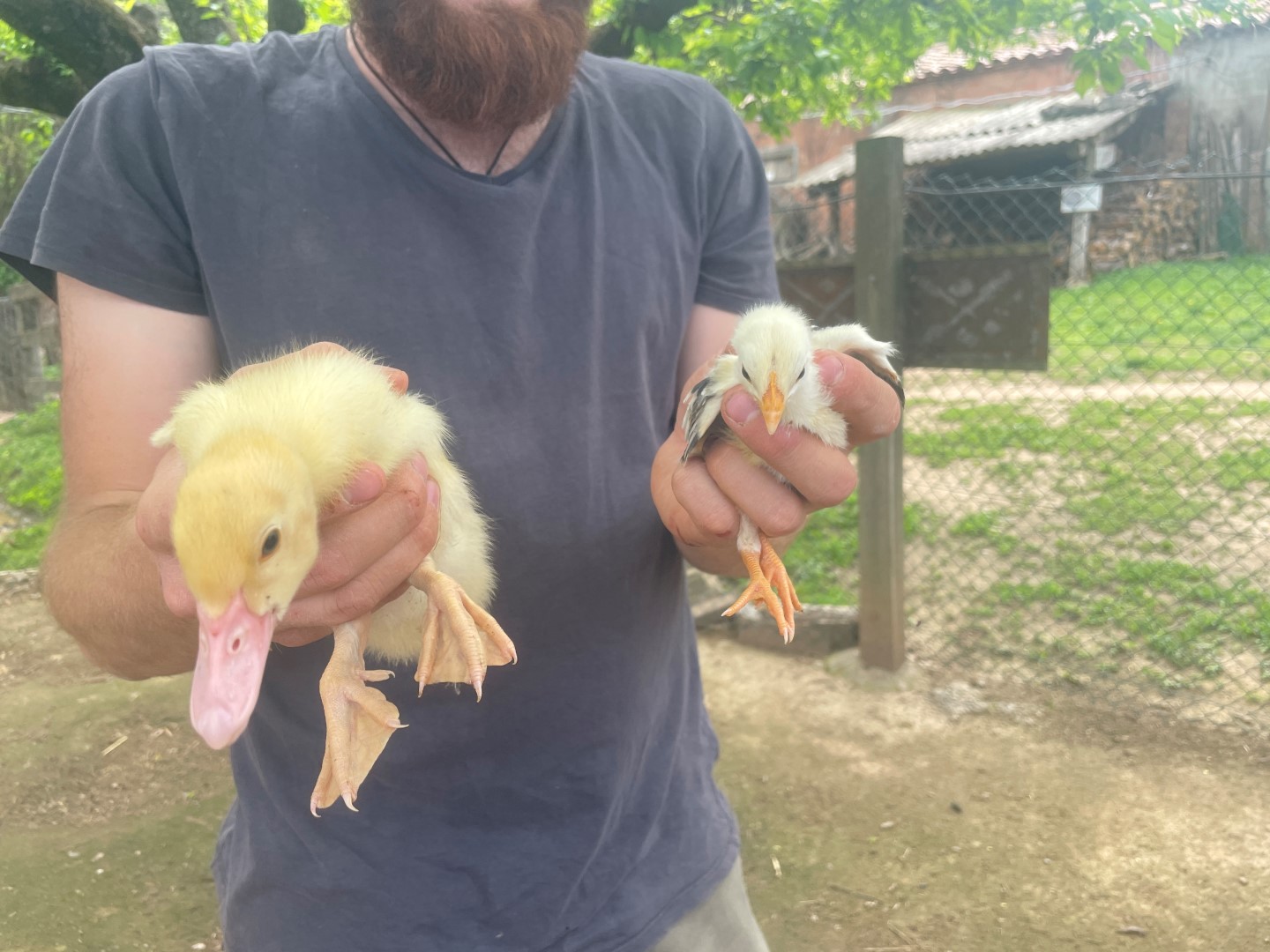 L’ARAN ENS VA EXPLICAR LA FUNCIÓ DE CADA ANIMAL I QUÈ ENS DONEN. ELS VAM PODER TOCAR, OLORAR I ESCOLTAR. TAMBÉ VAM VEURE I TOCAR PANOTXES DE BLAT DE MORO I DE QUINA MANERA LES MENJA CADA ANIMAL (SENCER O FARINA DE BLAT DE MORO) .