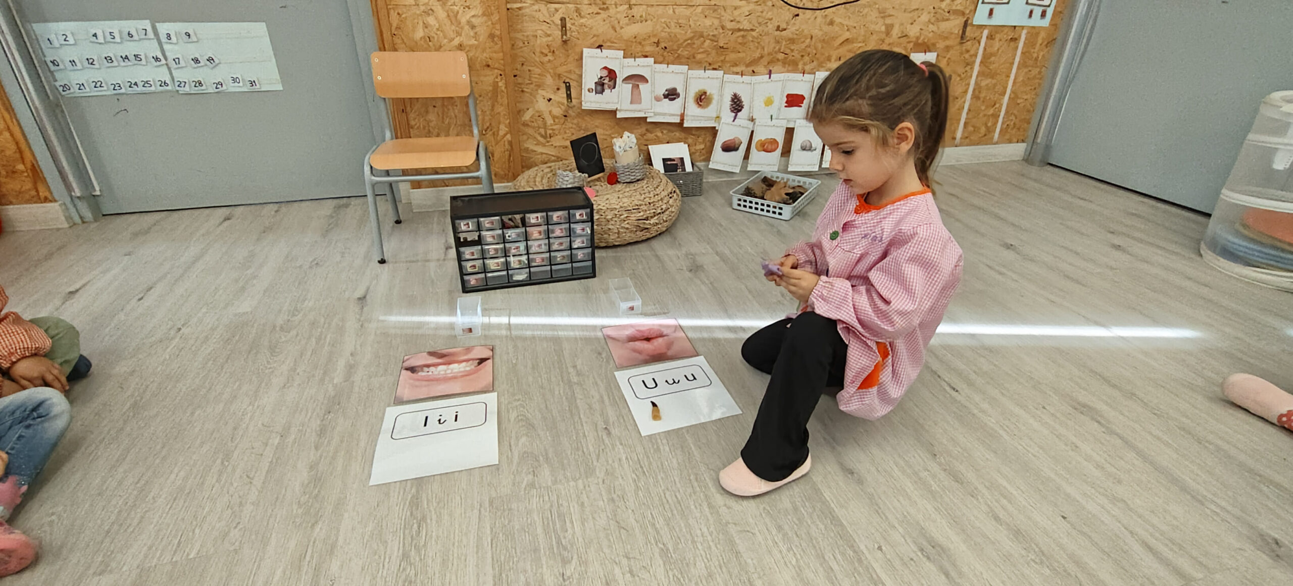 A LA SESSIÓ D’AVUI, HEM DESCOBERT EL CALAIX DEL SO “I” I DEL SO “U”, HEM MIRAT LES MINIATURES QUE HI HAVIA A CADA CALAIX, I HEM VIST COM ES REPRESENTA CADA SO (LLETRA DE PAL, LLIGADA I IMPREMTA). FINALMENT, HEM INTENTAT FER AQUESTES LLETRES AMB PLASTILINA.