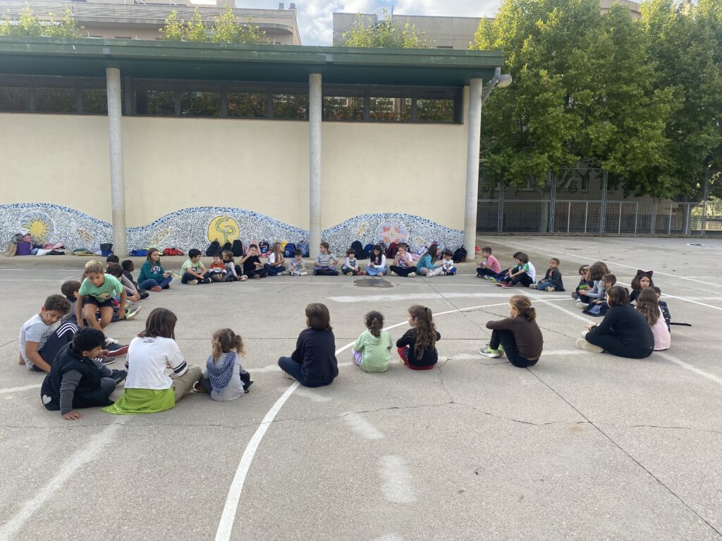 DESPRÉS, TOTS PLEGATS, VAM BAIXAR A LA PISTA, ON TOTA L’ESCOLA VAM FER EL BALL DE LA CASTANYERA. A MÉS, VAM PODER FER UN TASTET DE CASTANYES BEN TORRADETES.