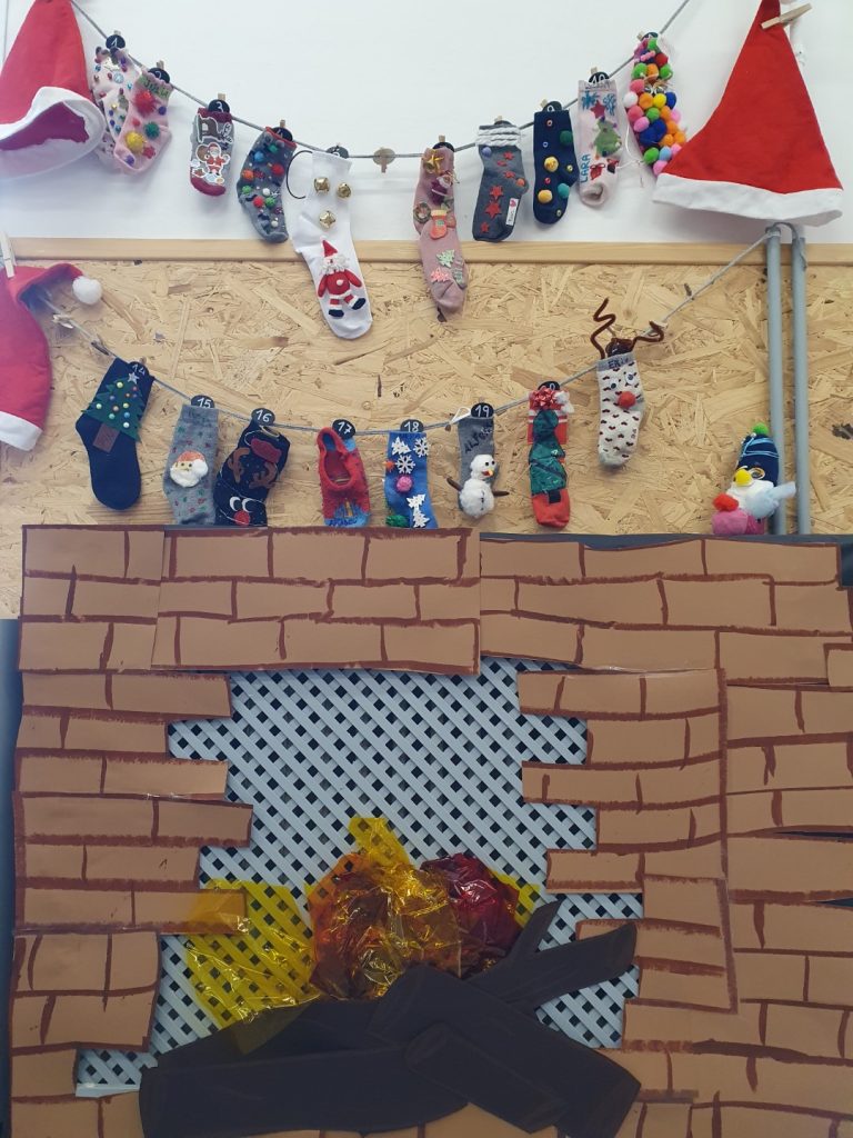 MIREU QUE BONICS HAN QUEDAT ELS VOSTRES MITJONS, A VEURE QUE TROBAREM A DINS… CADA DIA LI TOCARÀ A UN NEN O NENA DE LA CLASSE MIRAR QUE HI HA A DINS: ÉS EL NOSTRE CALENDARI D’ADVENT!!