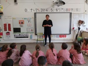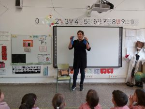 AVUI HA VINGUT LA HANAN, LA MAMA DE L’ARIJ, A EXPLICAR EL SEU OFICI. ELLA ÉS CUINERA EN UN RESTAURANT I ENS HA PORTAT DIFERENTS ESTRIS QUE FA SERVIR: CULLERA, FORQUILLA, GANIVET, RATLLADOR, CULLERA DE BOLES DE GELAT, GUANTS,… ENS HA EXPLICAT TOT EL QUE HA DE PORTAR POSAT ABANS DE CUINAR I LA IMPORTÀNCIA DE RENTAR-SE MOLT BÉ LES MANS I FER SERVIR GUANTS PER MANIPULAR ELS ALIMENTS. PER SER CUINERA S’HA DE TENIR MOLTA PACIÈNCIA I T’HA D’AGRADAR MOLT. PER ACABAR, ENS HA PORTAT PER ESMORZAR UNA COCA QUE HA FET ELLA I LA RECEPTA PERQUÈ LA PUGUEM FER A CASA. ENS HA AGRADAT MOLT!!