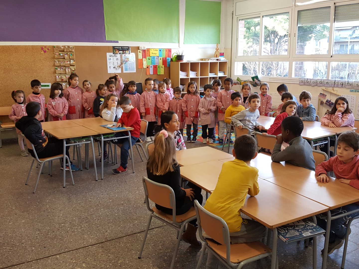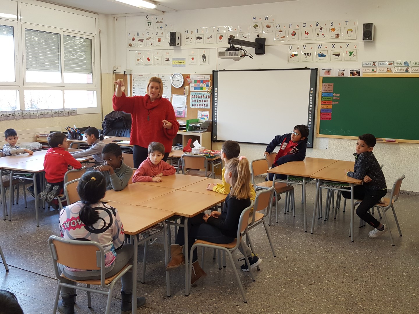 ELS FUTBOLISTES, A PRINCIPI DE CURS, VAM CONÈIXER ELS NOSTRES PADRINS PER AQUEST CURS, SÓN ELS TRIATLETES DE 2nA. VAM JUGAR UNA ESTONA I VAM FER LES PARELLES. AQUEST DIMARTS ENS VAM TORNAR A REUNIR A LA CLASSE DE 2nA PER FER JUNTS UN DETALLET PER DECORAR L’ARBRE DE NADAL DE L’ESCOLA! ENS HA AGRADAT MOLT!