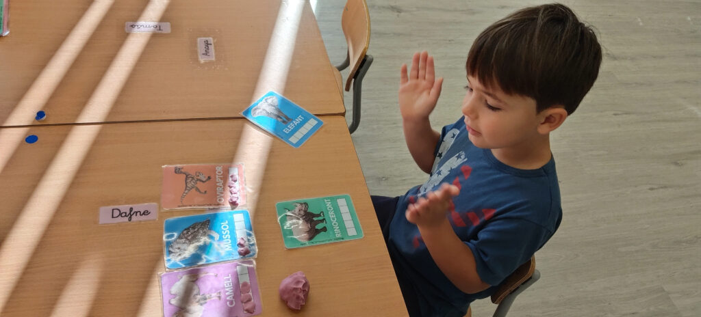 AQUEST CURS PICAREM MOLTES PARAULES PER PODER TREBALLAR LA CONSCIÈNCIA DE SÍL·LABA: QUANTS COPS DE MÀ TÉ LA PARAULA….? HO PODEM FER PICANT DE MANS, SALTANT O COMPTANT AMB ELS DITS. ENS AGRADA MOLT CLASSIFICAR TOTA MENA DE PARAULES I COMPTAR LES SEVES SÍL·LABES. FINS I TOT MARQUEM AMB UNA BOLETA DE PLASTILINA CADA SÍL·LABA.