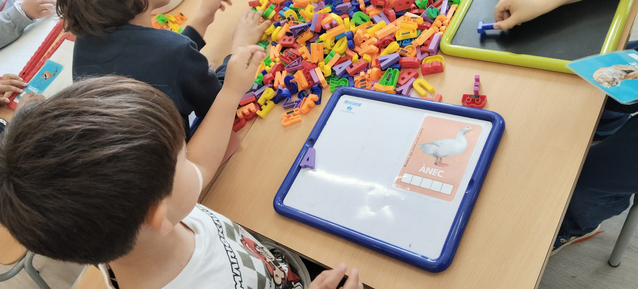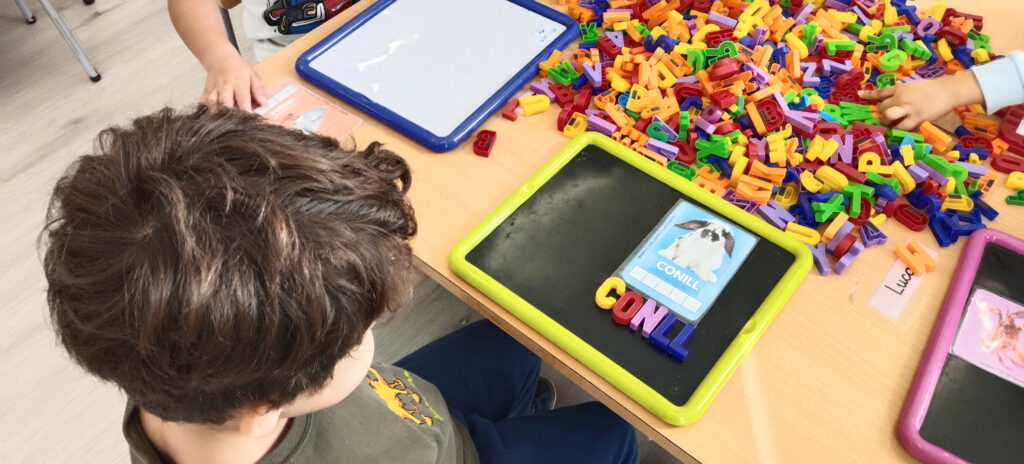 TAMBÉ ESTEM COMENÇANT A CONFEGIR PARAULES COPIANT AMB LES LLETRES MAGNÈTIQUES.