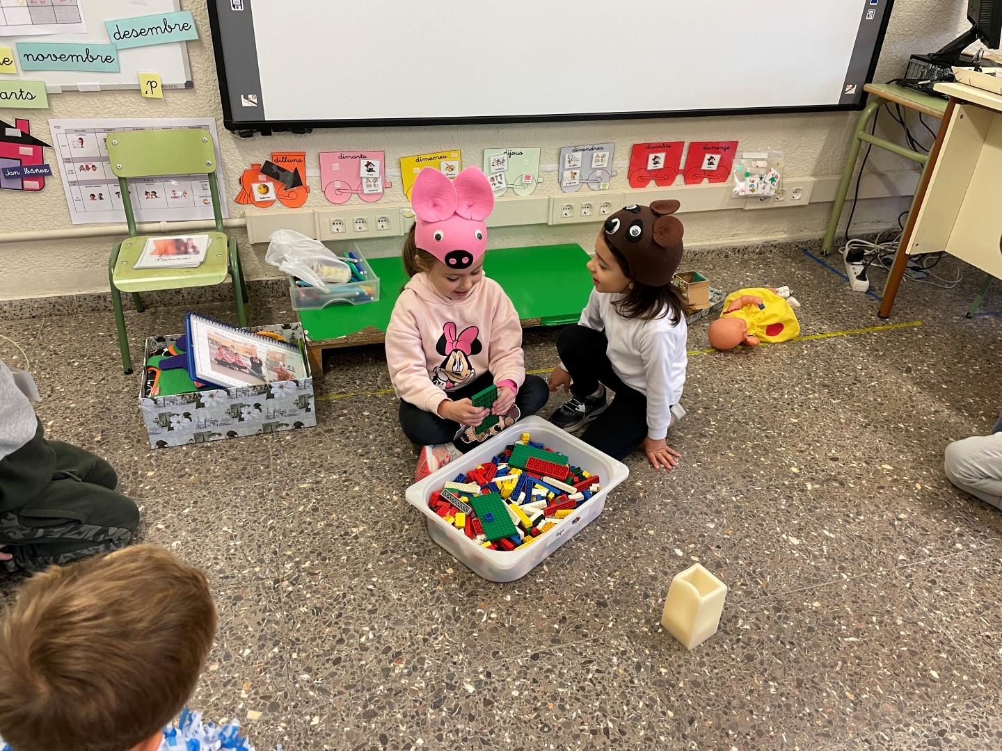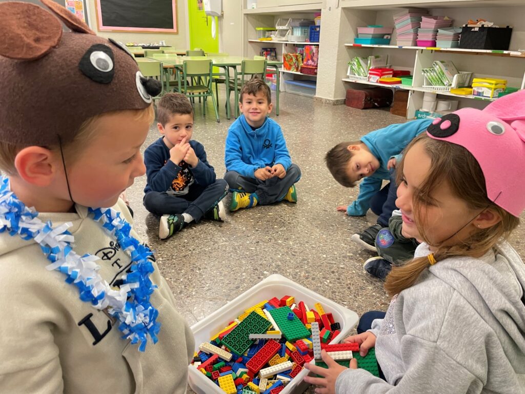 A LES CLASSES DE P5 HEM VIST UN VÍDEO D’UNA NENA QUE NO VOLIA COMPARTIR, FINS I TOT NO VOLIA COMPARTIR NI EL SEU PASTIS D’ANIVERSARI. HEM FET UNA CONVERSA SOBRE PERQUÈ A VEGADES NO VOLEM COMPARTIR I COM HO PODEM RESOLDRES. TAMBÉ HEM PENSAT QUE, A VEGADES, SI COMPARTIM LES JOGUINES, ENS HO PASSEM MILLOR, PERQUÈ AIXÍ NO JUGUEM SOLS. HEM FET UNA MICA DE TEATRE, IMAGINANT-NOS QUE EREM ANIMALETS QUE VOLIEN JUGAR ELS UNS AMB ELS ALTRES I MICA EN MICA APRENIEM A COMPARTIR.