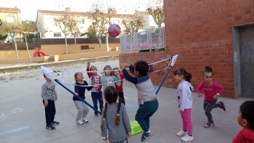 JA PORTEM UN PARELL DE SESSIONS A L’EXTERIOR ON ENTRENEM PER APRENDRE A JUGAR A VOLEIBOL. ENS AGRADA MOLT !!! HEM COMENÇAT PRACTICANT A LLANÇAR-NOS LA PILOTA PER SOBRE DE LA XARXA I AGAFAR-LA ABANS DE QUE TOQUÈS EL TERRA. AIXÒ QUE SEMBLA TAN FÀCIL HA ESTAT UN GRAN ESFORÇ PERQUÈ, REALMENT, ESTAVEM FORÇA DESENTRENATS. MICA EN MICA LI ESTEM AGAFANT EL RITME. ENS HO HEM PASSAT SUPERBÉ!!!