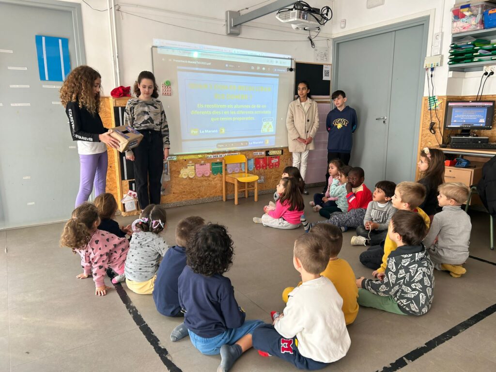 Aquest 1r trimestre l’alumnat de 6è hem volgut participar en La Marató de TV3. El tema d’aquest any és la salut sexual i reproductiva. Per poder fer partícips a tots els nens/es de l’escola en aquesta campanya solidària, estem realitzat una sèrie d’activitats per poder recaptar diners. Aquestes activitats són: guardiola solidària, tallers de Nadal (polseres, dibuix i pinta cares), partits de futbol, karaoke, conta contes i sorteig de dues paneres. Amb aquesta petita col·laboració volem aportar el nostre granet de sorra per tal de donar llum a malalties que pertanyen a l’esfera íntima, de les quals no se’n parla i posar nom als problemes per normalitzar-los.