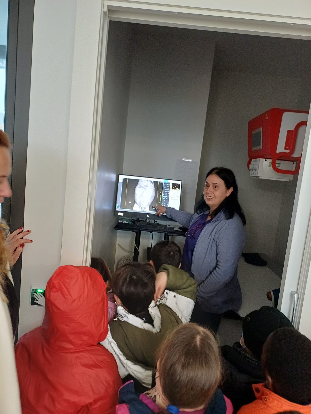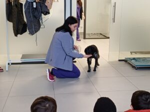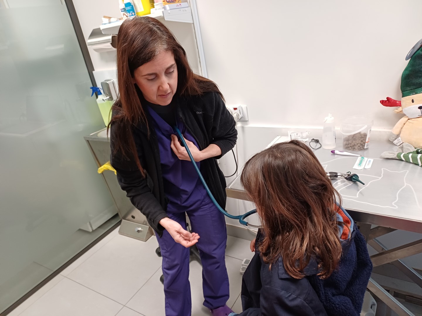 Dimarts vam fer la primera visita del projecte dels oficis! Vam anar a la clínica veterinària Petits peluts on ens van rebre la Montse i la Núria. Ens van explicar que elles fan el mateix que els metges i metgesses, però a animals: els miren els ulls, les orelles, la boca, el cor, els pesen… Perquè estiguin més tranquils, els donen “premis” (llaminadures per nosaltres) i perquè no es gratin les ferides, els posen una campana. Vam poder veure el quiròfan i una radiografia d’una gata embarassada! Per acabar, ens van donar un detallet molt dolç! Va ser genial!