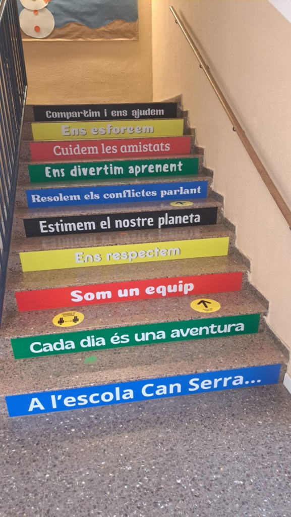 La comissió de coeducació de l’escola ha impulsat la iniciativa de vestir les escales de Primària amb frases coeducatives. L’alumnat de Primària ha participat per triar i/o proposar les frases i aquest és el resultat. Els 5 colors del logo de l’escola ofereixen, a partir d’avui, aquests missatges per fomentar les bones relacions amb l’entorn, les amistats, l’autoestima i la cura pròpia i personal.