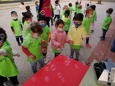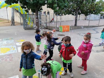 Al pati ens esperaven una màquina de fer bombolles de sabó i una música molt animada que no ens deixava parar de ballar. Vam gaudir molt de la companyia de la  Farigoleta encara que, a alguns del infants, els feia una mica de por.