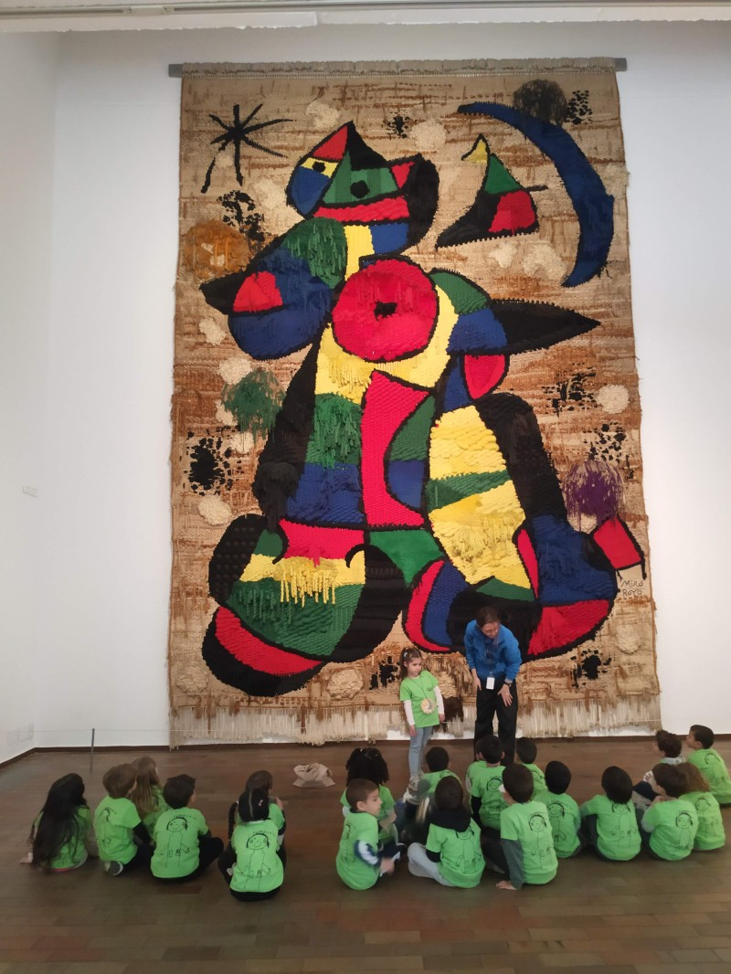 Vam poder veure algunes obres de l’artista Joan Miró, escultures, quadres i un tapís moolt gran! Hem pogut veure totes les coses que havíem treballat a la classe, els seus colors, els tres pèls de les persones, les llunes, els sols, etc.