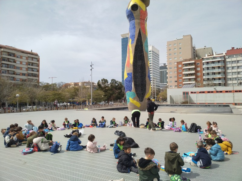En sortir vam anar a esmorzar a una petita plaça i després cap al parc de l’Escorxador, a on vam poder jugar una mica en un parc. Més tard vam anar a veure una escultura gegant del Joan Miró, “La Dona i l’ocell” i allà mateix vam dinar.
