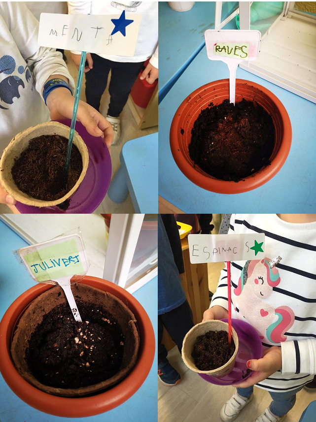 I avui ha arribat el dia de posar en pràctica tot el que han après sobre les plantes. Per fer-ho, tant els pingüins com els cocodrils, s’han organitzat per equips i amb la llista de les eines i els passos a seguir, cada taula ha plantat, de manera autònoma, la seva llavor.