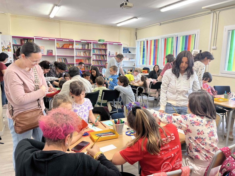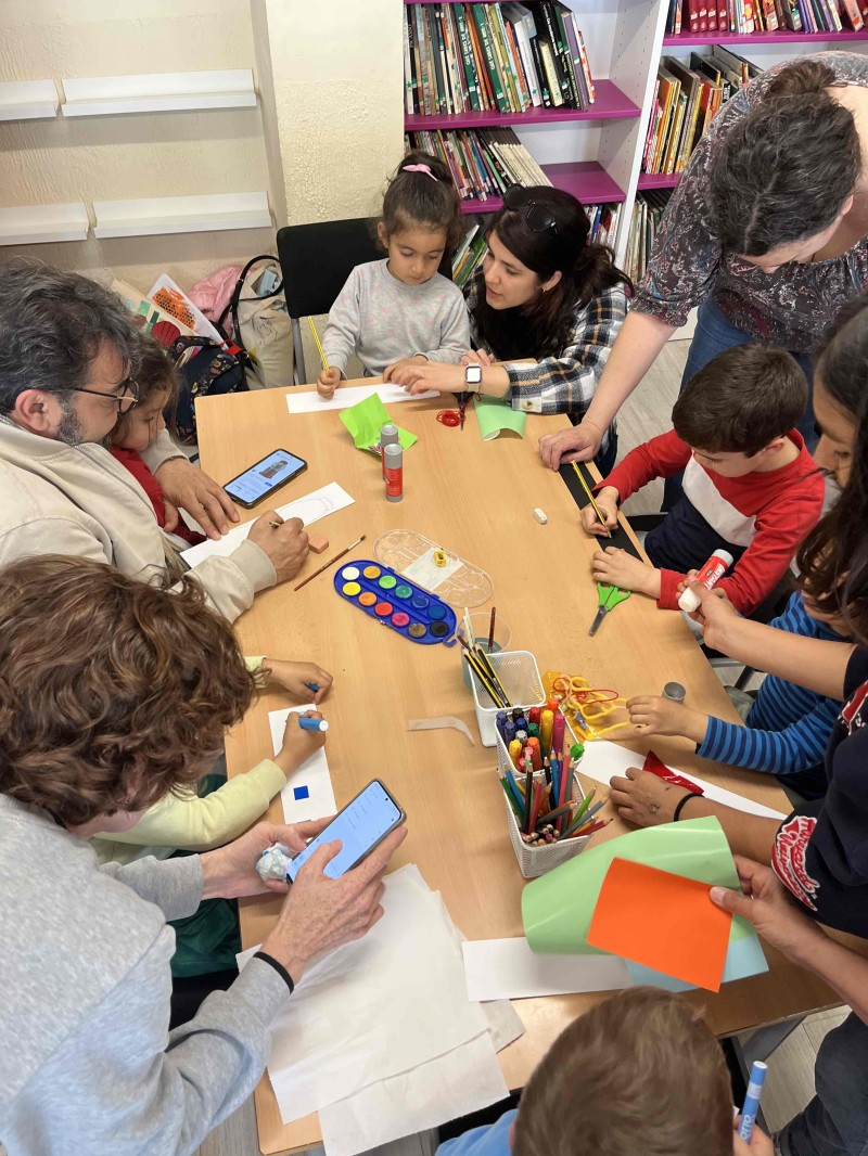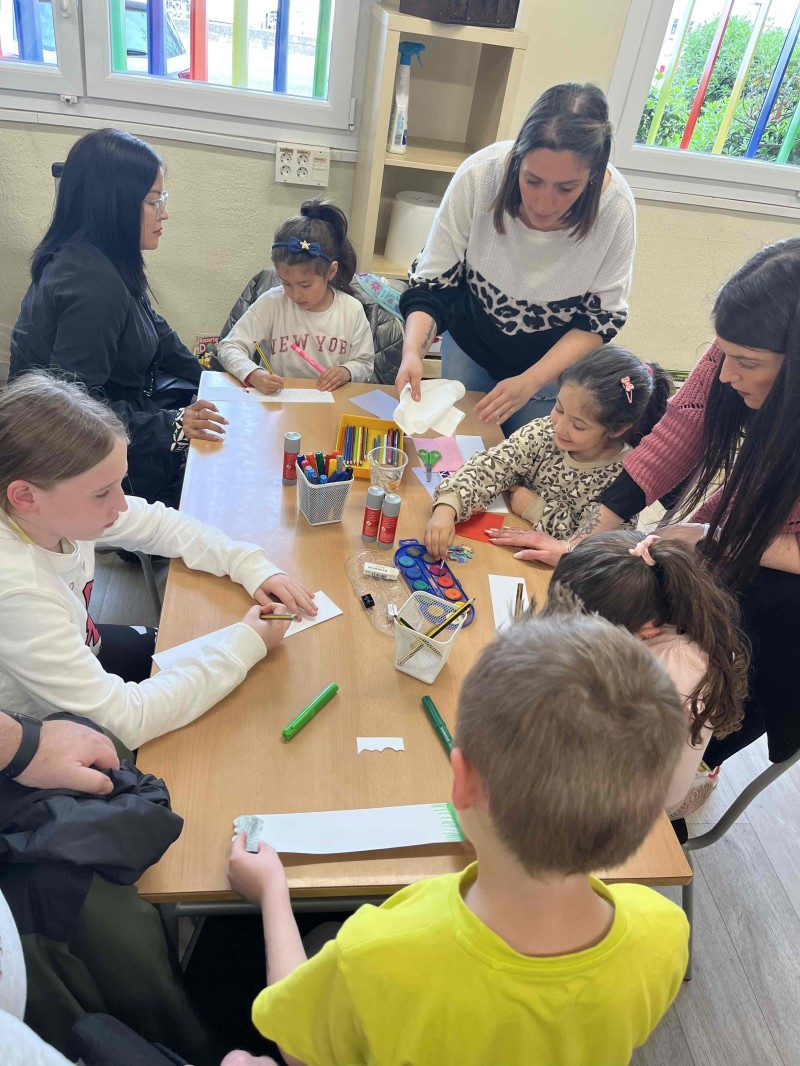 Infants i famílies van participar amb molt d’entusiasme en la creació de punts de llibre, deixant volar la creativitat en un espai compartit i ple d’imaginació.
