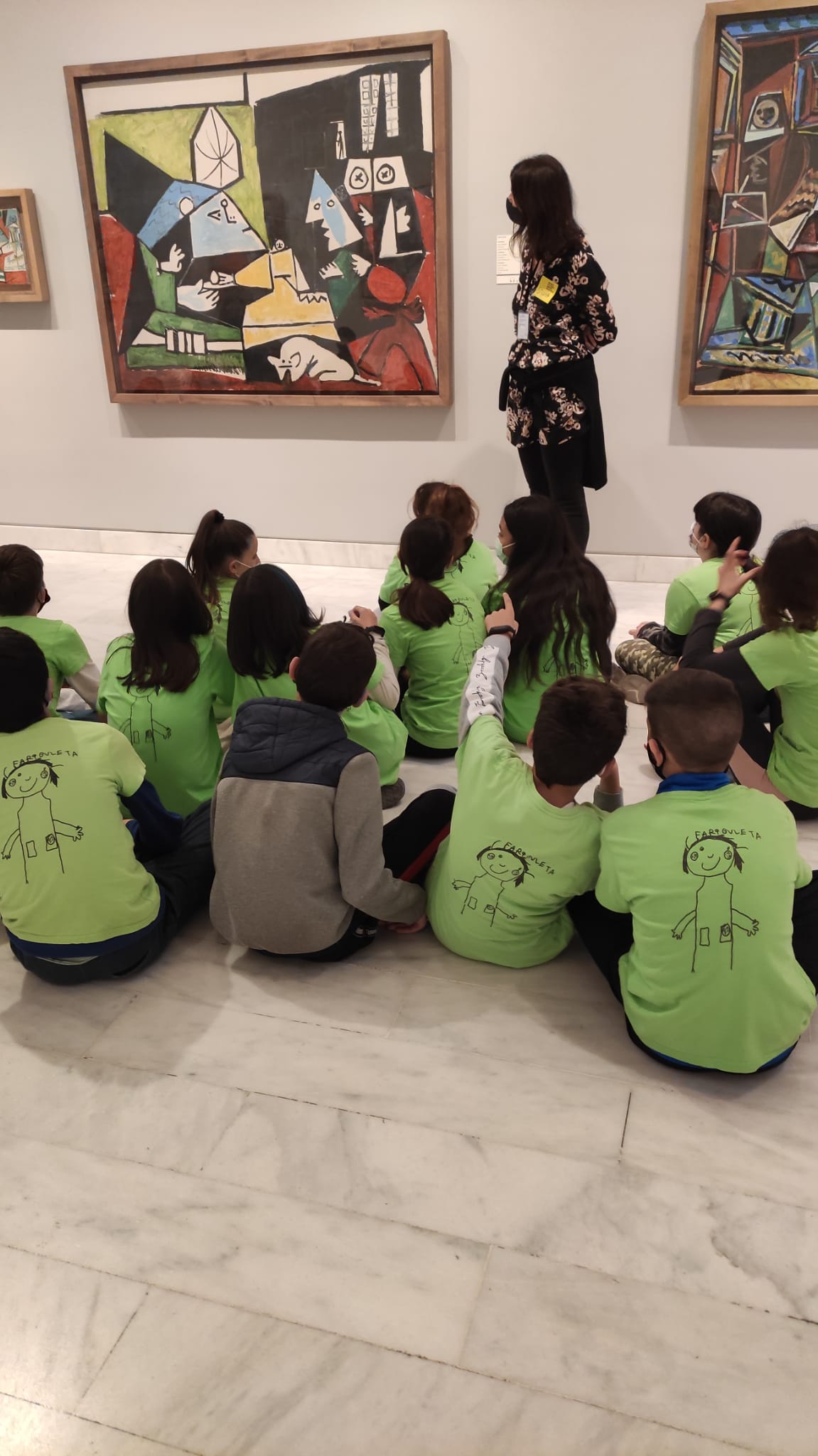 Per començar, vam anar passejant per les galeries i mirant una mica les diferents sales. Ens vam anar detenint per analitzar quatre quadres que s’ubiquen en diferents períodes de la vida de l’artista. Gràcies a l’acompanyament de les guies, les quals ens anaven fent preguntes i gràcies, també, al fet que les noies i nois anaven recordant tot allò que havíem parlat i fet a les aules, van anar observant, analitzant  i comentant les quatre obres.
