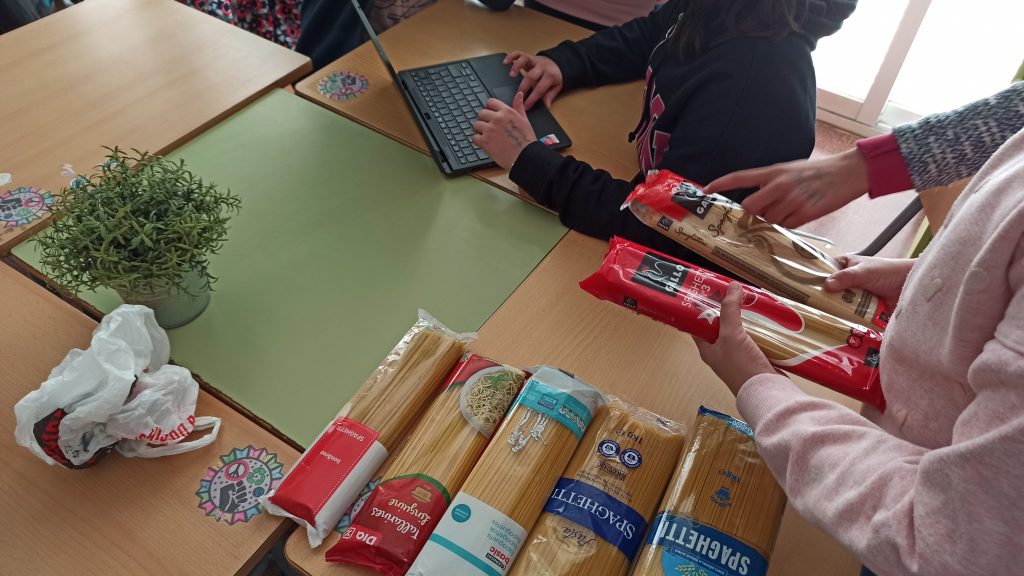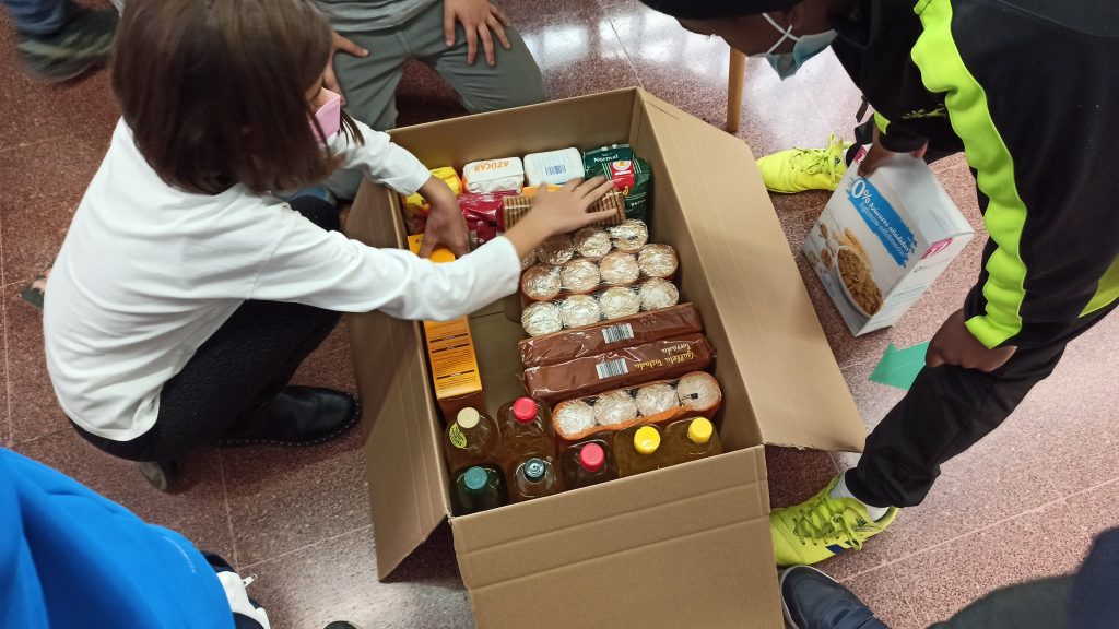 Aquest matí els alumnes de cinquè hem estat classificant i comptant la gran quantitat d’aliments que hem rebut de les famílies. Una vegada acabat el recompte del primer dia volem compatir amb vosaltres que hem superat la xifra dels 100 kg de productes alimentaris. Hem arribat a 112,9 kg!