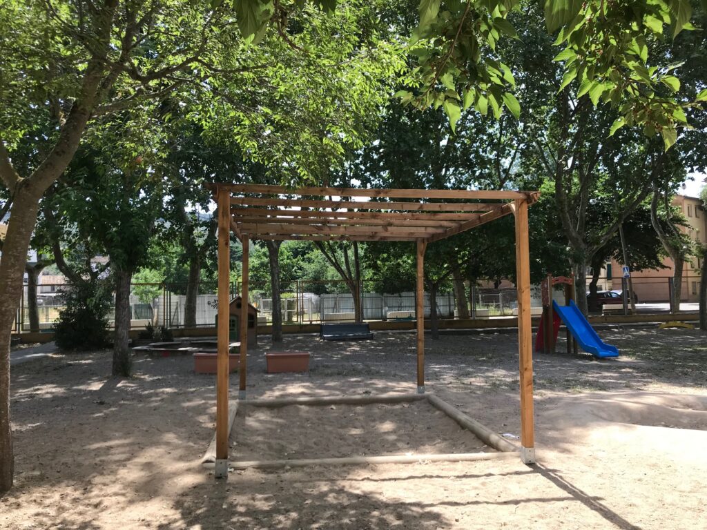 Gràcies a l’ajut Activa el teu pati de l’Ajuntament de Girona hem pogut instal·lar una pèrgola a la zona del