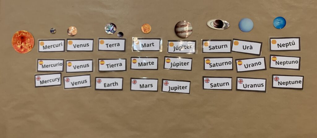 Aquesta setmana hem iniciat una nova aventura i aquesta vegada viatjarem fins l’espai. Aquesta setmana hem començat aprenent el nom