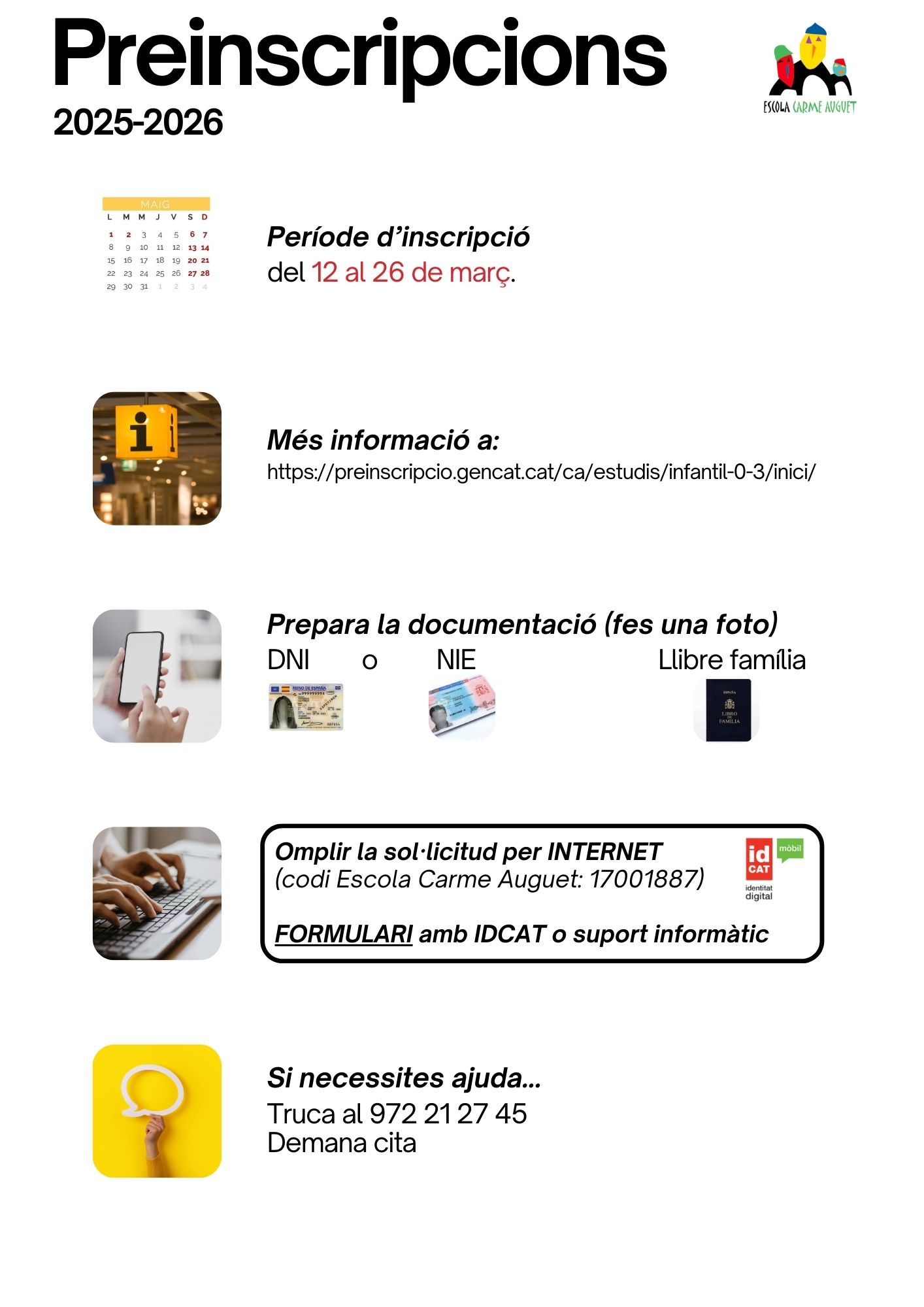 En cas de no poder assistir-hi, podeu concertar una cita o demanar més informació trucant al 972212745.