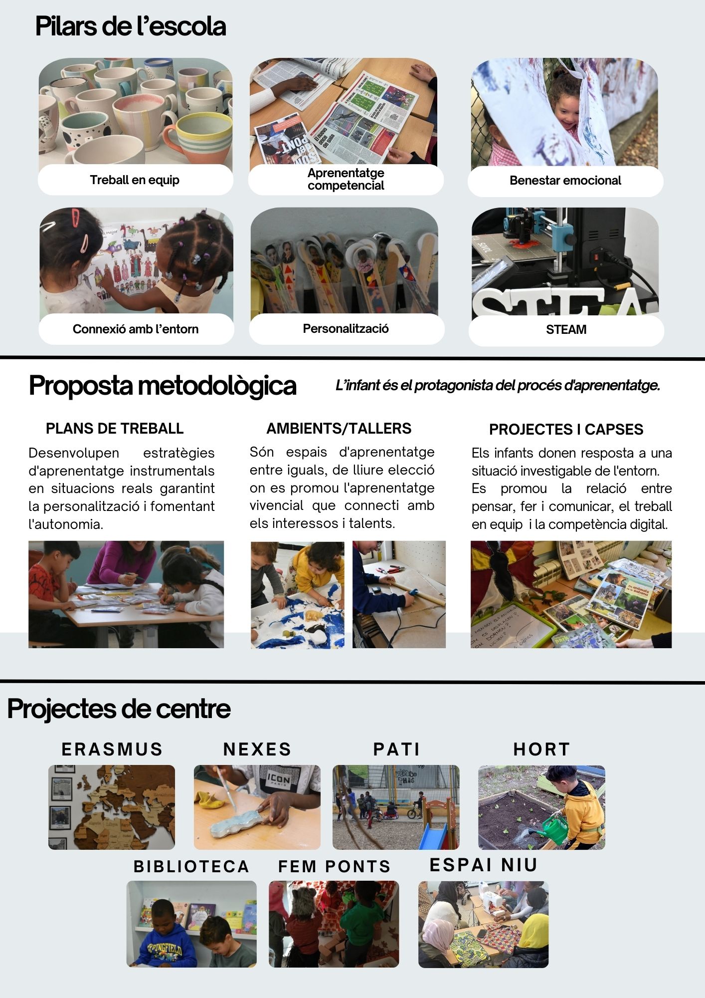 Us esperem el divendres 14 de març a les 15h a l’escola per conèixer el nostre projecte educatiu i visitar els espais del centre.