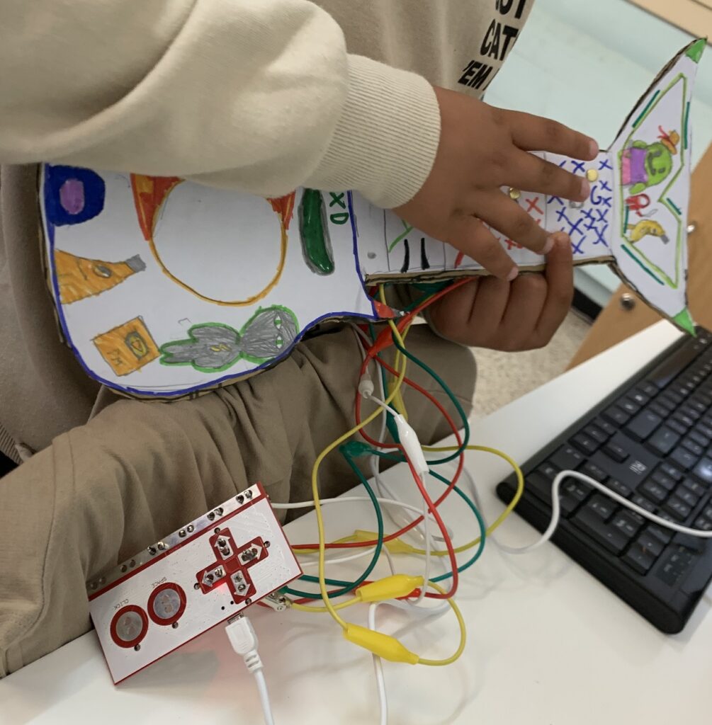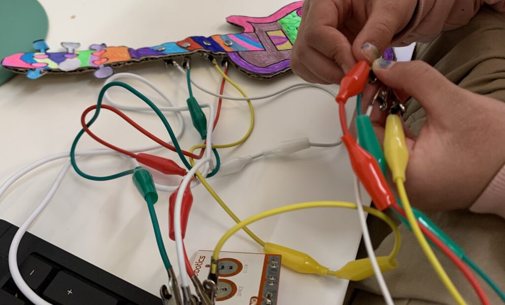 Acabem una nova ronda de tallers de 1r, 2n i 3r. Us volem parlar d’una part d’un dels tallers on els alumnes han creat les seves guitarres i les han fet sonar amb el MAKEY-MAKEY.