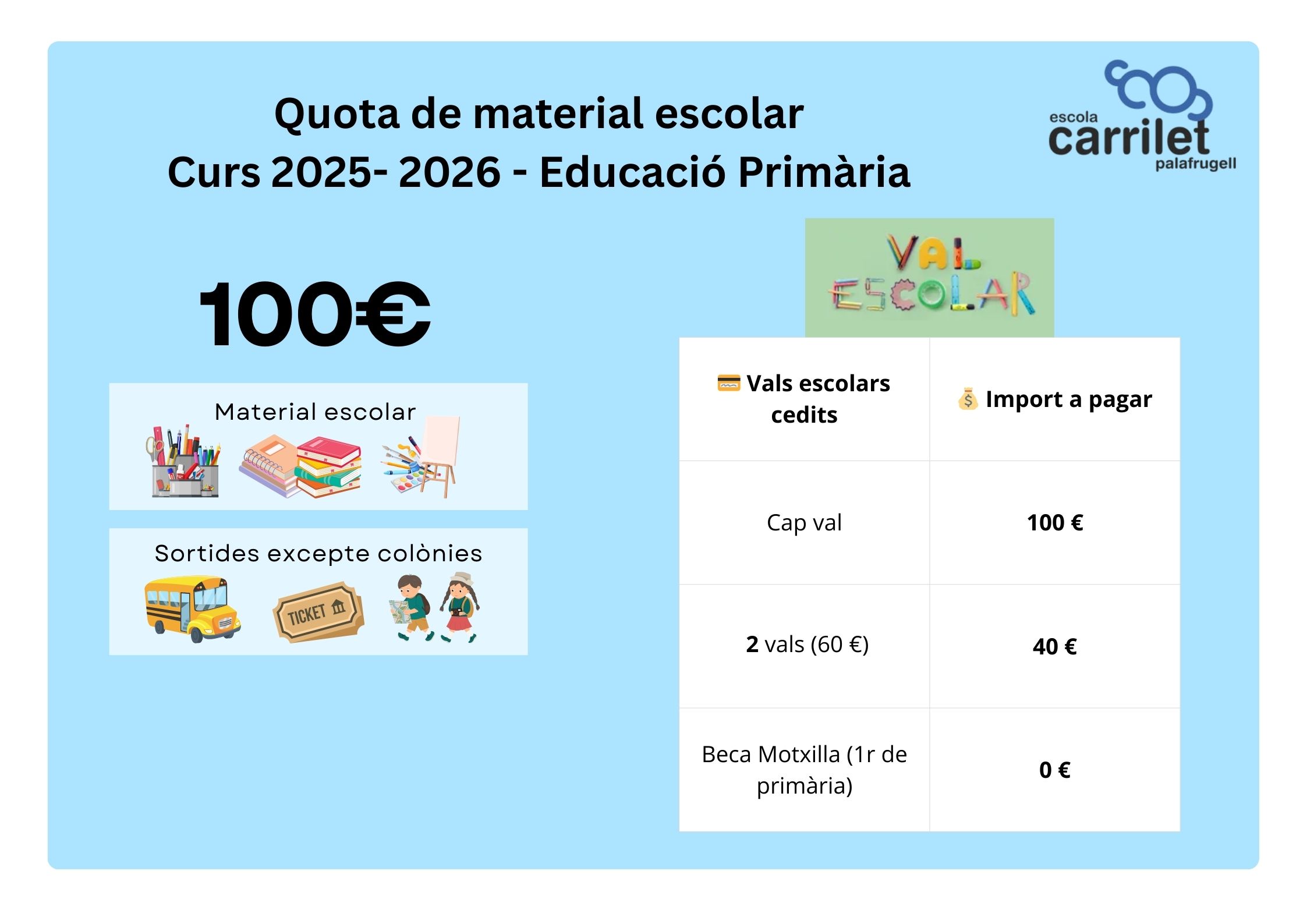 • 📚 Inclou material escolar
