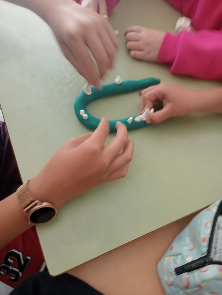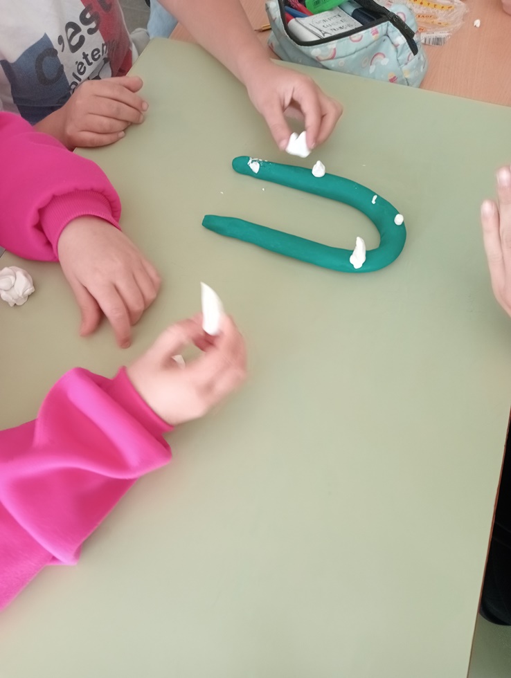 Hem modelat una mandíbula d’un llop amb plastilina.