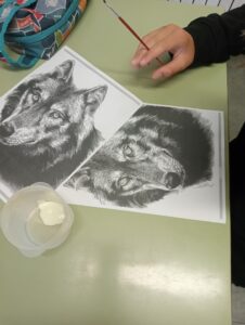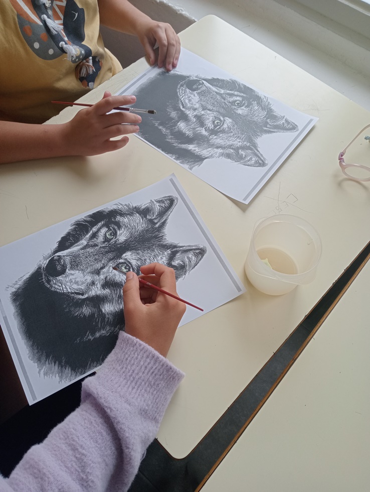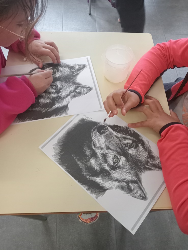 La tercera sessió de l´udol del llop . Avui hem treballat la vista del llop a través d’una activitat de pintar-li el ulls, hem entès com era la seva visió nocturna. Alguns animals, com el llop, tenen una estructura anomenada tapetum lucidum a la part posterior de l’ull que reflecteix la llum per fins i tot una visió millor a la nit que els éssers humans, en els quals només un 10% de la llum que entra l’ull cau en les peces fotosensibles de la retina. La seva visió de la nit baixa probablement entre un intensificador d’una imatge de la primera generació i de la segona generació .El tapetum lucidum és una capa pigmentada situada per sota de la retina. La llum hi rebota perquè incideixi als fotoreceptors. Es tracta d’una estratègia fotomultiplicadora útil en circumstàncies de poca llum.