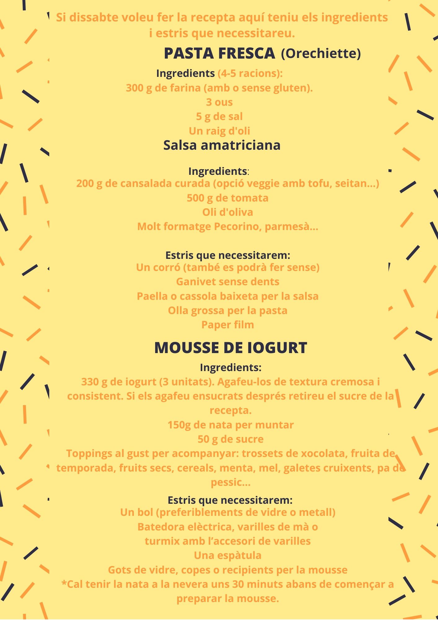 !!! RECORDEU TENIR PREPARATS TOTS ELS INGREDIENTS: