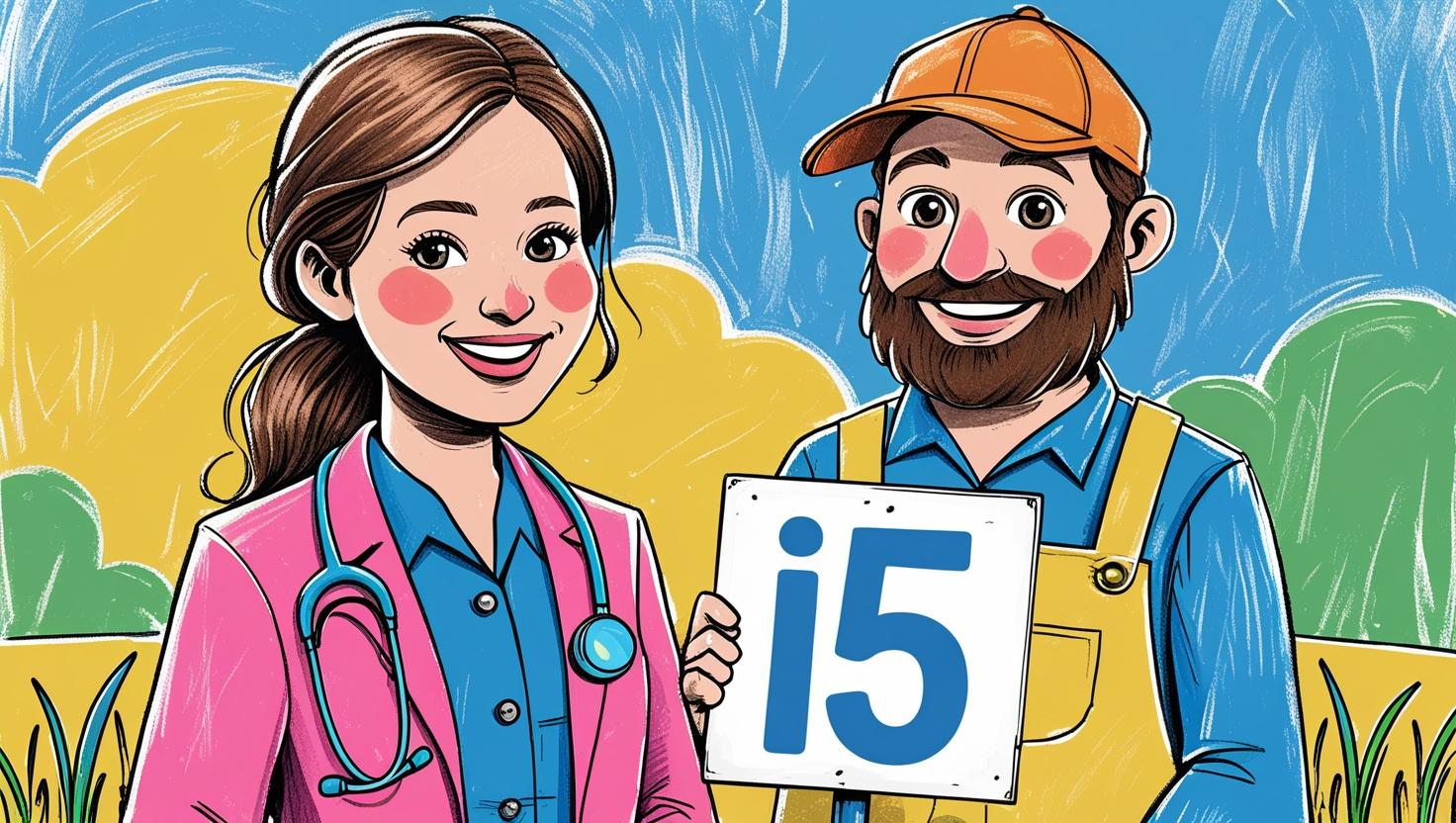 hazme un dibujo infantilizado de una doctora con un grangero con un cartel que ponga I5 ← Anterior Següent →