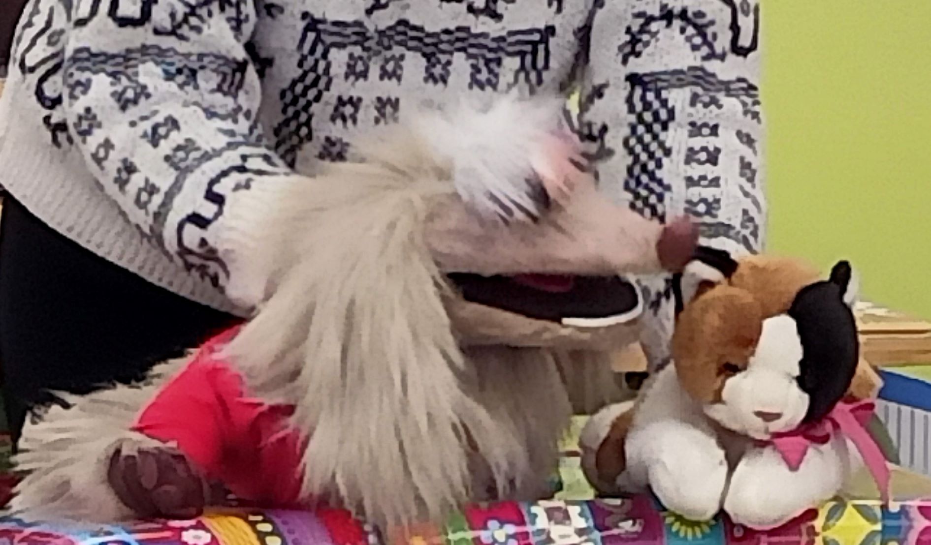 La Kika és una gosseta molt especial amb la que hem après a ser respectuosos i responsables amb els animals. Hem après que no podem abandonar als animals i els hem de cuidar molt. L’Anna mitjançant unes titelles ens ha explicat una llegenda per entendre perquè els gossos són els animals que millor es relacionen amb la resta d’animals i persones. També hem conversat sobre les nostres mascotes, com es deien i quines atencions necessiten.