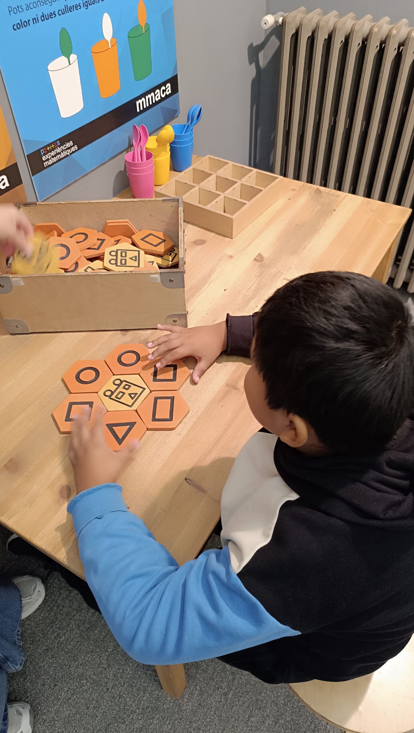 Hem realitzat un taller amb diferents reptes matemàtiques per poder jugar i experimentar i descobrir conceptes matemàtics com son la geometria, la simetria, els patrons, la lògica, l’orientació i el càlcul.