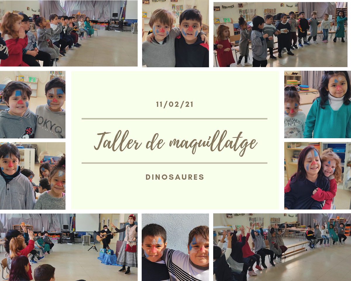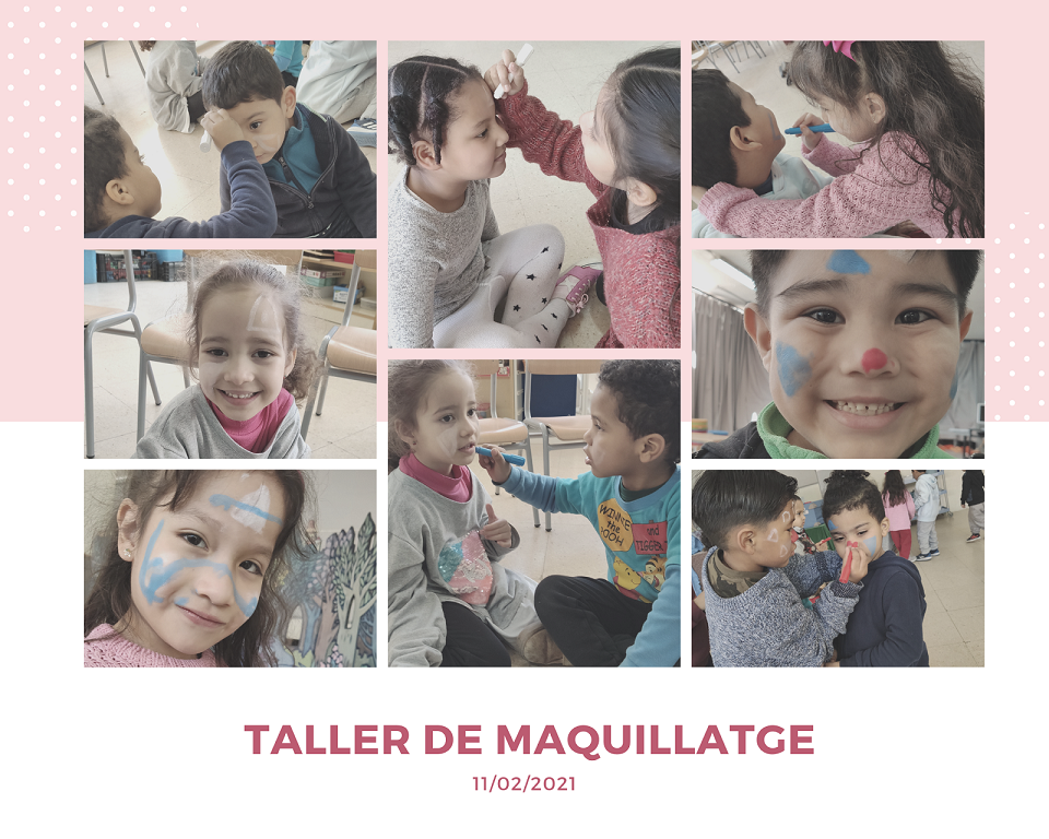 Finalment, cada grup (els Dinosaures, la Selva, les Papallones i els Dofins i les Dofines )van realitzar un taller de maquillatge, i fent honor a la nostra escola Charlie rivel ens vam pintar de pallassos a partir de formes geomètriques i amb un nas ben vermell.