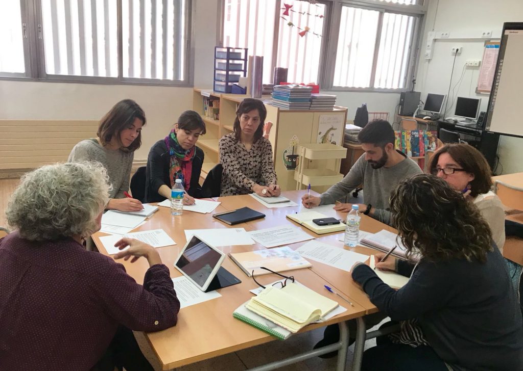 Tal com queda palès al vídeo del programa Aula L’H de Televisió de L’Hospitalet (que podeu trobar penjat en aquest bloc) el projecte Biblio(r)evolució que està impulsant la nostra escola segueix en marxa. Fa una dies, un seguit de mestres del Charlie Rivel i de persones externes al centre que col·laboren amb nosaltres (Biblioteca Josep Janés de Collblanc, Centre de Recursos Pedagògics, Coordinadora LIC de la ciutat, Fundació Jaume Bofill) es van reunir a la nostra biblioteca per donar forma a aquest projecte que tenim entre mans. També un grup de famílies de l’escola van venir a la biblioteca a gaudir una estona de la lectura amb els seus fills i filles.