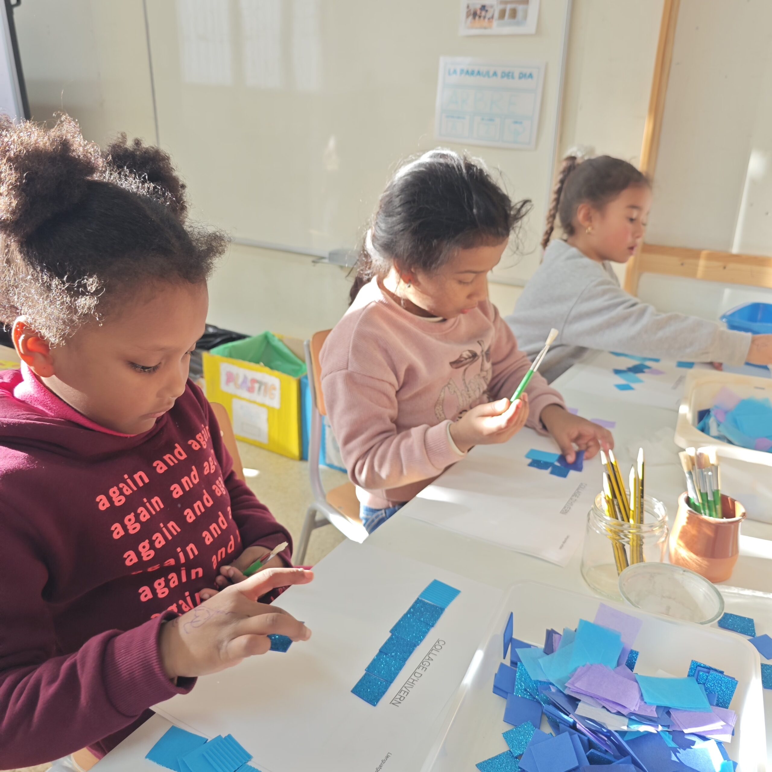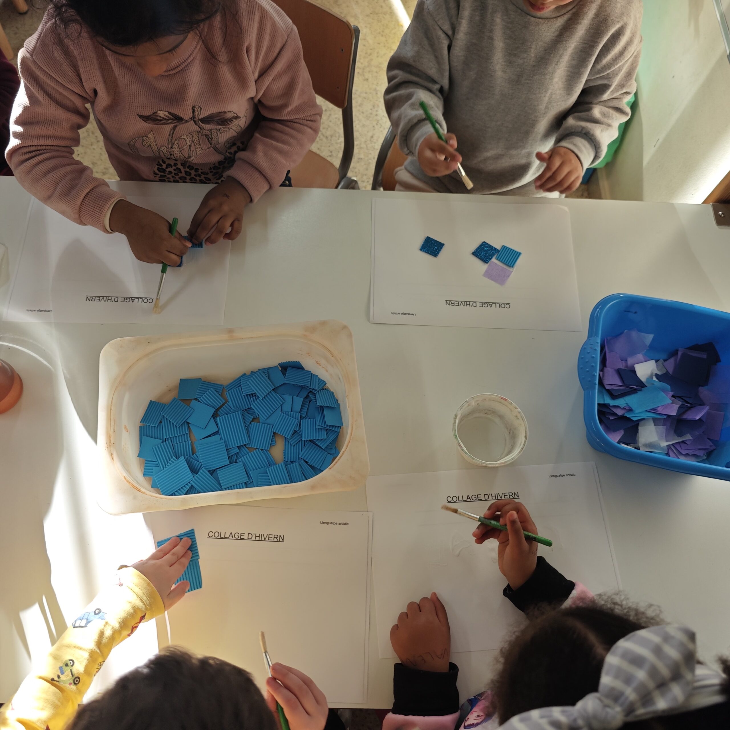 A infantil estem realitzant propostes relacionades amb l’estació de l’any de l’hivern. El mes de Gener va arribar la Fada de l’Hivern a les classes i ens va portar un recurs literari relacionat. Al grup-classe d’ I5 ens ha portat el llibre “Un ninot de neu”, a partir del qual hem conegut els elements més rellevants de l’estació i hem creat un collage amb colors freds i textures variades. També hem après a recitar el poema “L’hivern” de Bofill, Puig i Serrat; a través del qual hem integrat vocabulari nou.