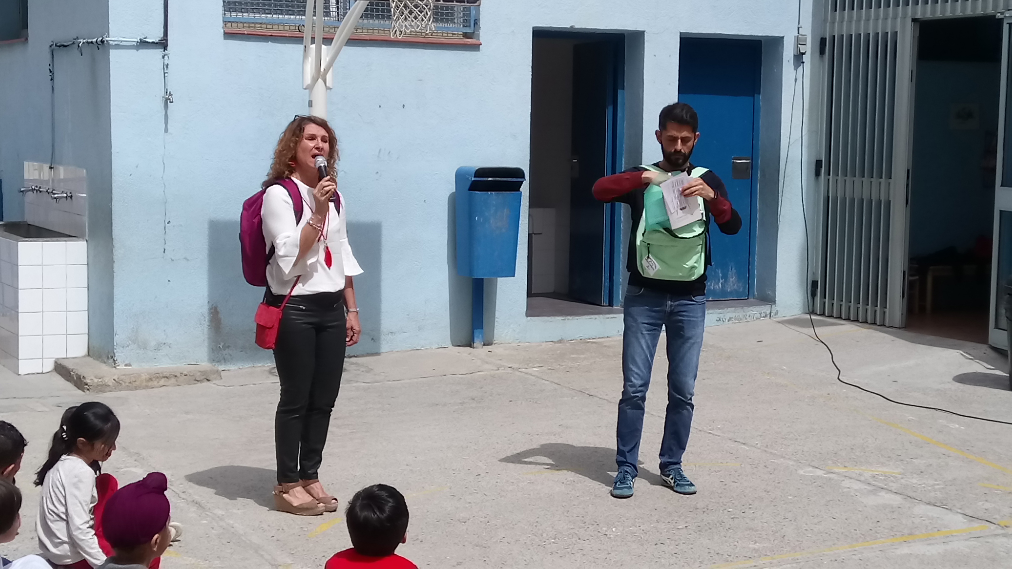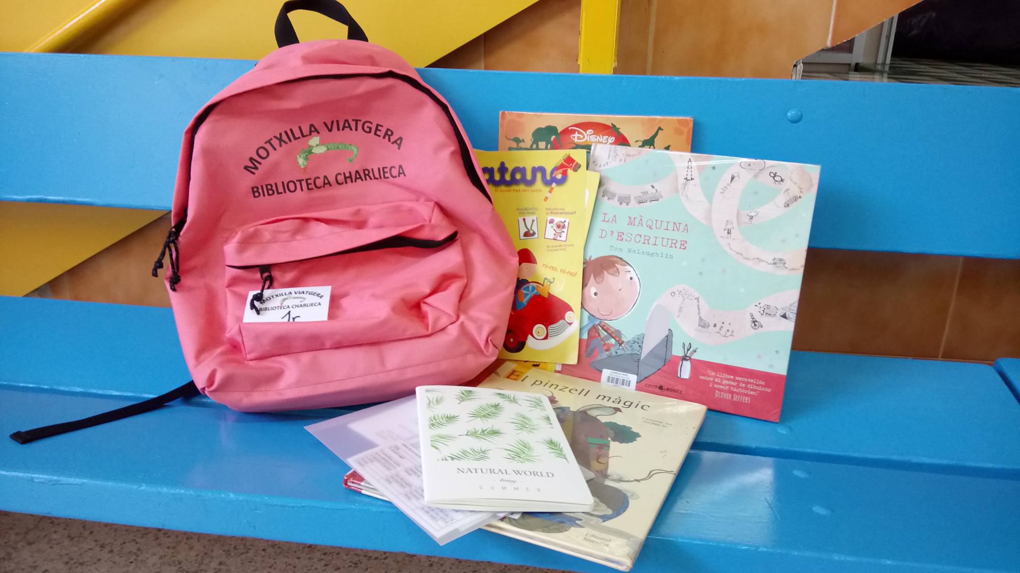 En acabar el concert, la Montse -la nostra Directora- i el Víctor -en Cap d’Estudis de l’escola- ens van presentar les noves Motxilles Viatgeres, que permetran a tots els nens i nenes de la classe compartir la lectura de llibres, contes i revistes de la biblioteca de l’escola amb les seves famílies. Aquestes són les motxilles: