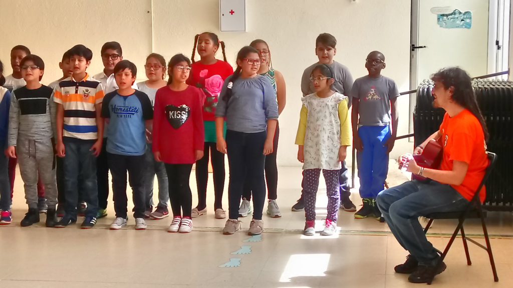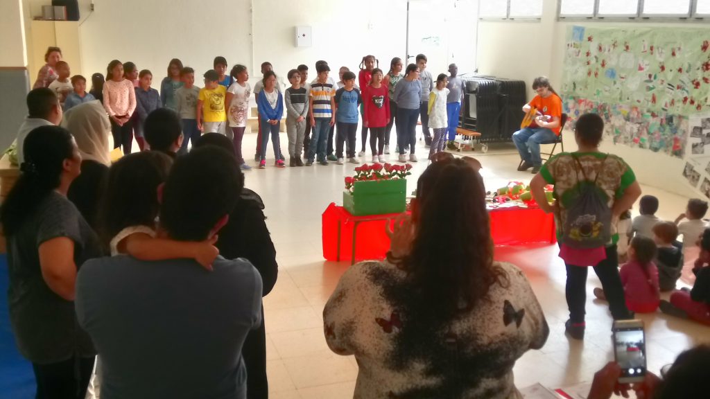 A la tarda, els nois i noies de 4t (que al matí havien estat cantant amb l’Adrià a l’IES Eugeni D’Ors) van oferir les seves cançons als nenes i nenes de P4 i les seves famílies en un petit concert a l’aula de psicomotricitat.