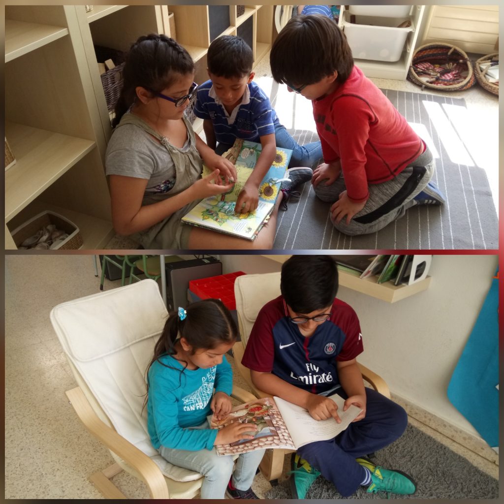 I parlant de P5, mireu què bé s’ho passen practicant la lectura amb els seus padrins lectors, els nois i noies de la classe de 4t: