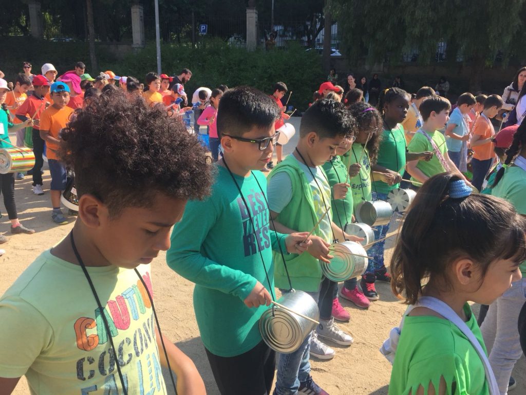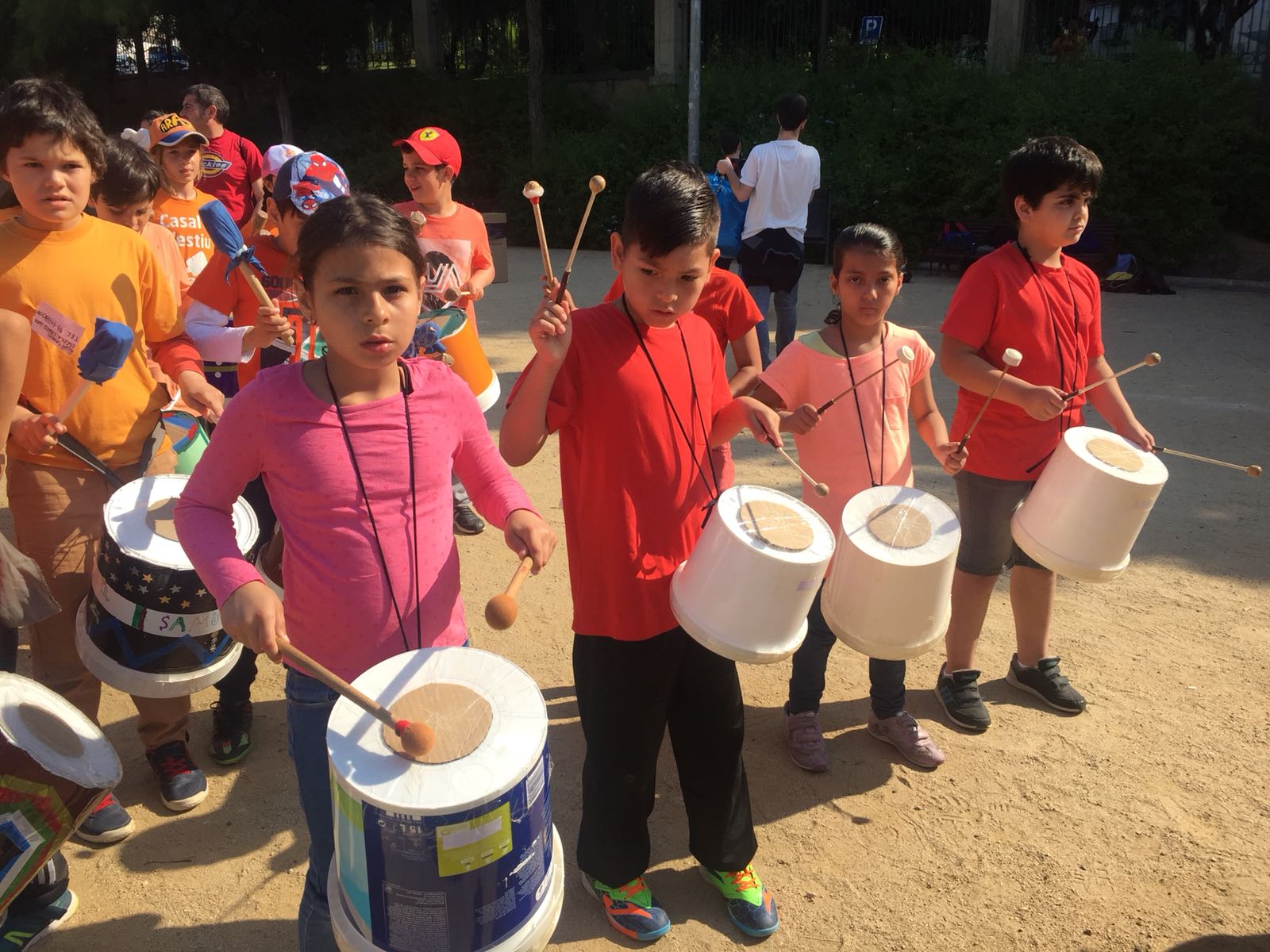 DIJOUS 17 DE MAIG: el dijous al maytí, els nois i noies de la classe de 3r i l’Adrià van participar a la batucada escolar que va tenir lloc al Parc de Can Buxeres, al barri Centre. Els instruments de percussió que van tocar els havien construït ells mateixos amb materials reciclats. Mireu el resultat: