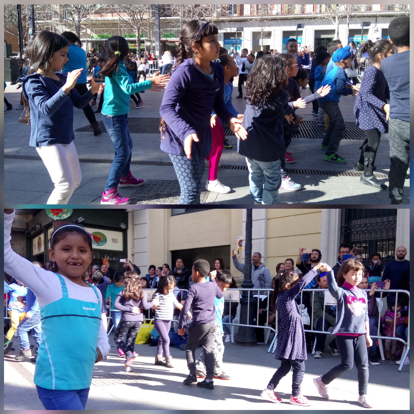 El passat divendres, 16 de març, els nens i les nenes de la classe de 1r del Charlie Rivel van participar, junt amb altres escoles de la ciutat, a l’activitat “Tothom balla!”, dins de la Quinzena Metropolitana de Dansa. Van ballar col·lectivament les coreografies que havien preparat per a tres peces musicals -una clàssica, una tradicional i una altra pop- interpretades en directe per tres grups d’estudiants i professors de l’Escola Municipal de Música-Centre de les Arts de L’Hospitalet. Va ser una experiència molt divertida, com podeu comprovar en aquestes imatges.