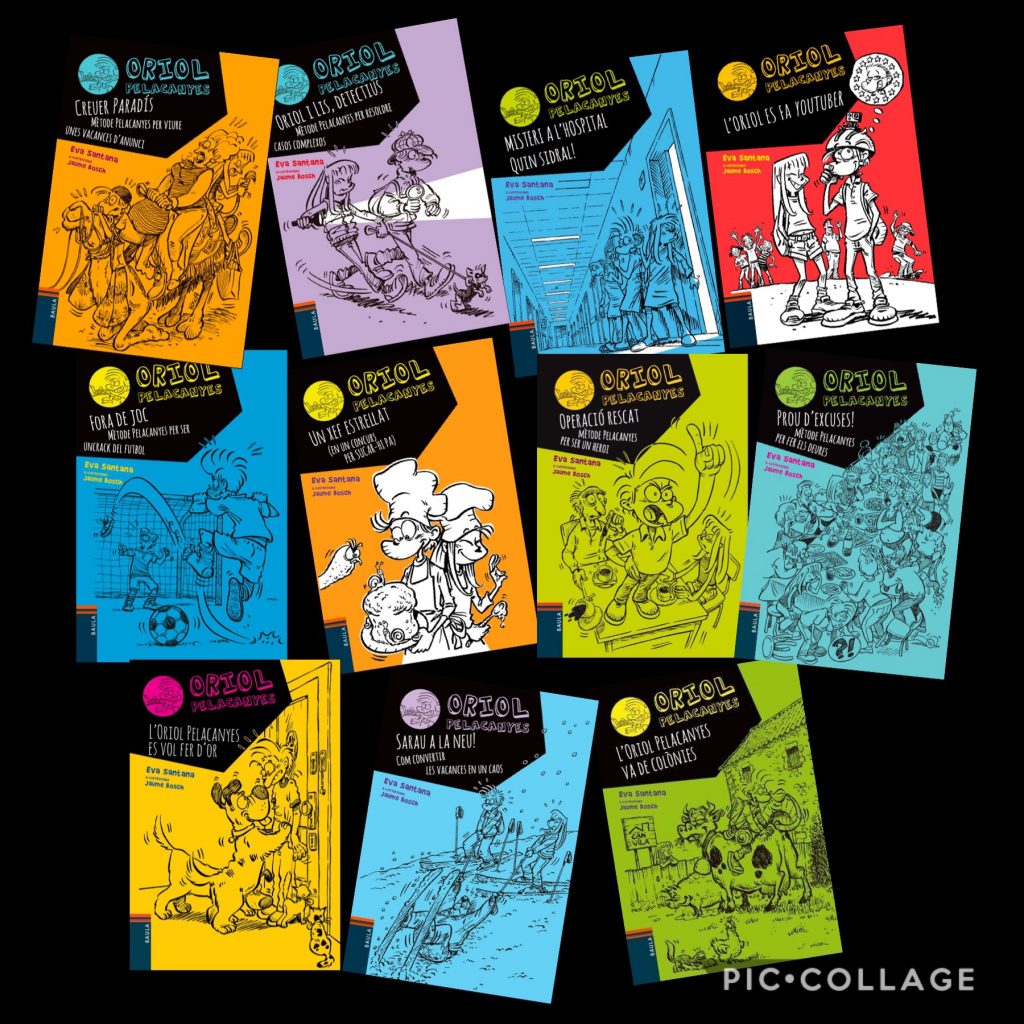 Som la Maria i l’Ali de 5è A, ens hem llegit els 7 llibres de la saga de l’Oriol Pelacanyes, que tenim a la Biblioteca de l’escola. Com que ens ha entretingut i agradat molt, us deixem aquest BookTrailer perquè també us contagieu amb aquesta magnífica col·lecció. Us animem a que us passeu per la