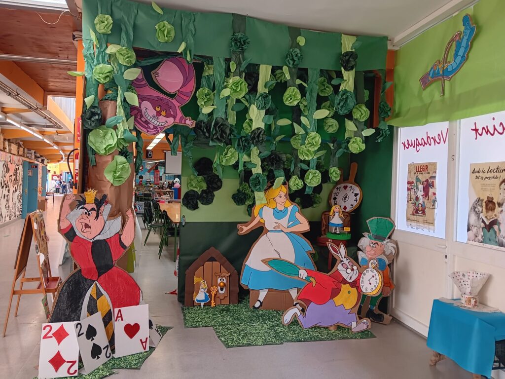 Durant aquest curs hem creat un racó temàtic sobre el conte “Alícia al país de les meravelles” en honor dels 125 anys de la mort del seu autor Lewis Carroll. És el pseudònim amb què és conegut a la història de la literatura Charles Lutwidge Dodgson, sacerdot anglicà, lògic, matemàtic, fotògraf i escriptor anglès. És una obra de literatura fantàstica que explica la història d’una noia que cau per un forat i es troba en un món de fantasia poblat per unes criatures peculiars.