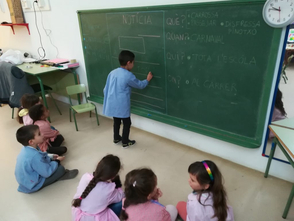 El grup de “periodistes” de P5 d,aquesta setmana volem compartir una notícia en relació a la festa de Carnaval 2018 i també, algunes fotos representatives del procés d’elaboració del text:idees possibles, votació d,allò que explicarem, organització i resposta de l, informació (què?,qui?,on?,quan?…), paraules claus, escriptura i millora. Un treball en grup molt satisfactori on hem après jugant!