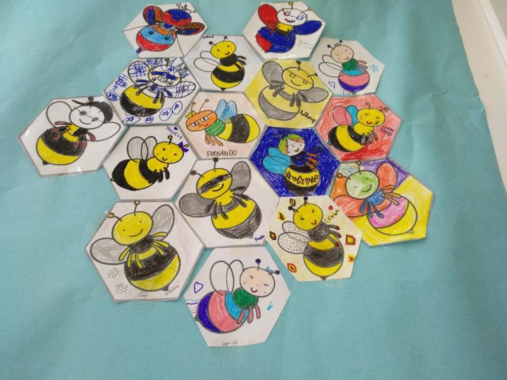 Les abelles són insectes que viuen formant un rusc, i totes treballen molt. Els nens i nenes de segon també treballem i ens estimen molt, per això hem elaborat un rusc on sortim tots representats.