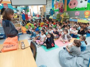 Vam passar una estona molt agradable i enriquidora on la Muriel va respondre a totes les quëstions que els nens i les nenes li van plantejar. Aquestes preguntes van ser sobre el conte, sobre la professió d’escriptora, la seva vida personal, etc.
