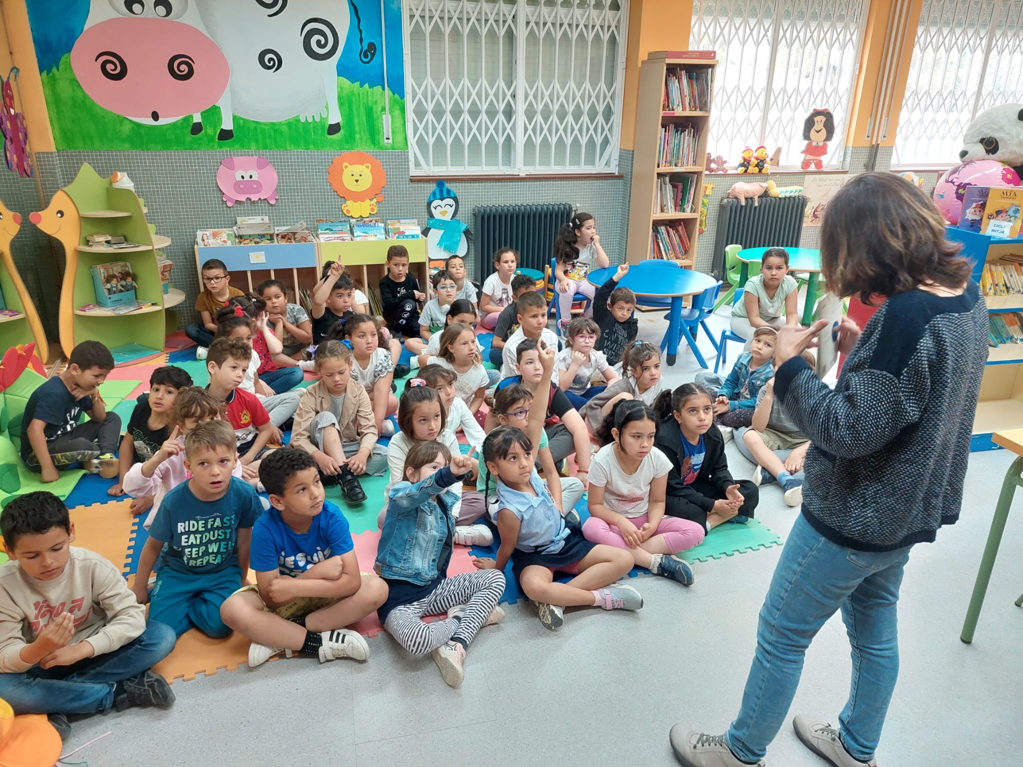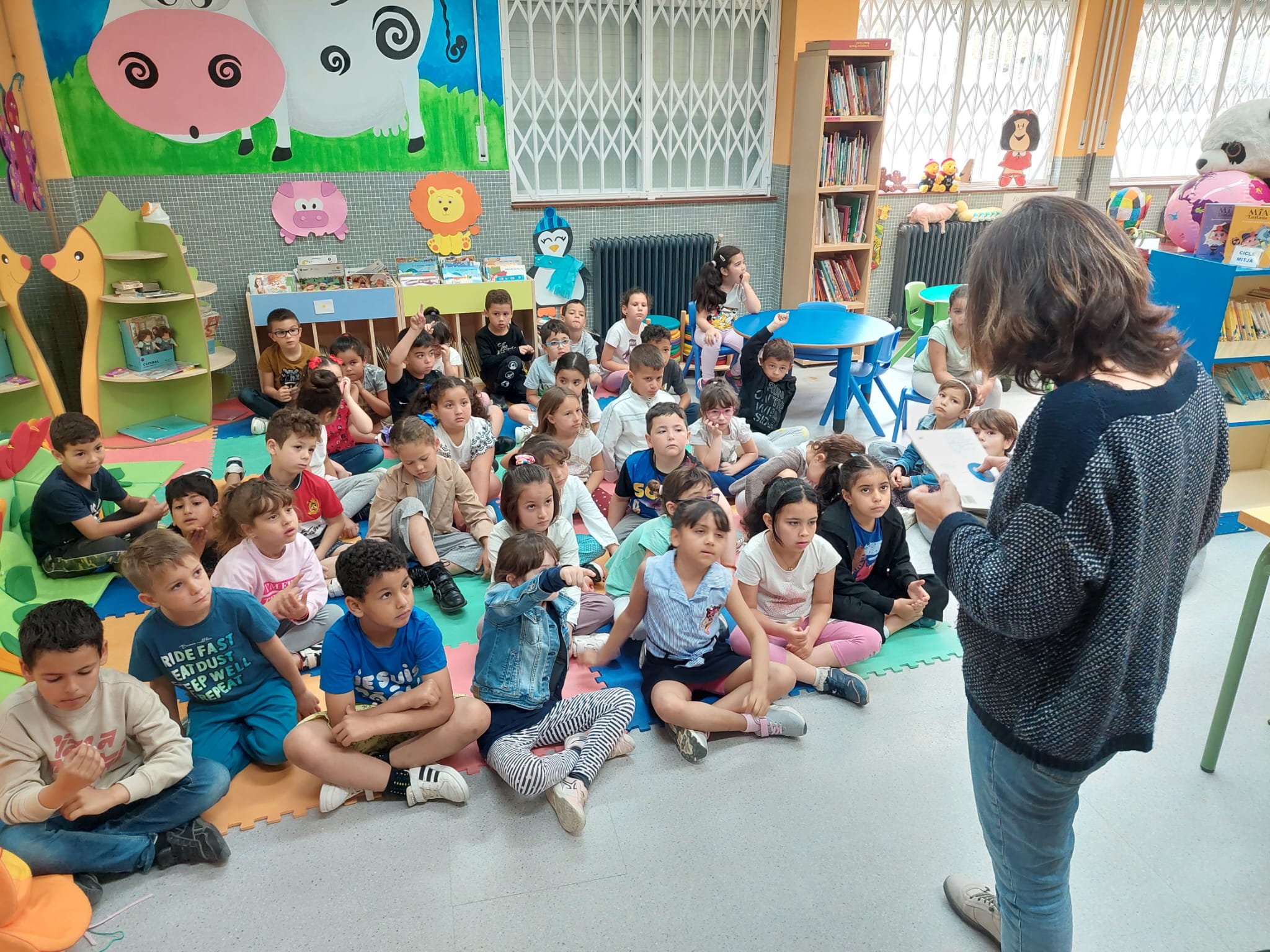 Vam passar una estona molt agradable i enriquidora on la Muriel va respondre a totes les quëstions que els nens i les nenes li van plantejar. Aquestes preguntes van ser sobre el conte, sobre la professió d’escriptora, la seva vida personal, etc.