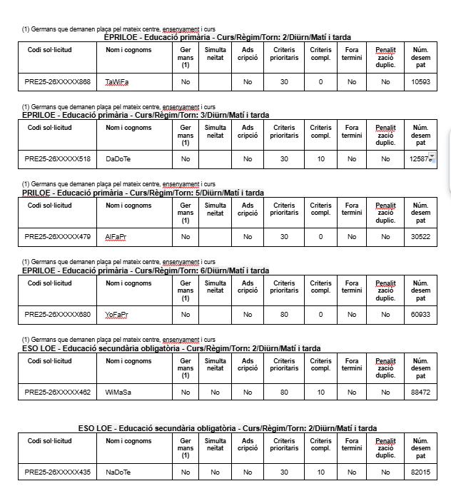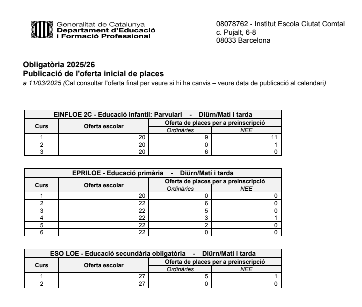 OFERTA DE PLACES