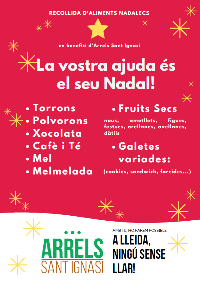 Un cop més l’escola col·labora amb Arrels St. Ignasi, us convidem a participar en la recollida d’aliments característics del Nadal, amb la nostra aportació fem que més gent gaudeixi de les festes.